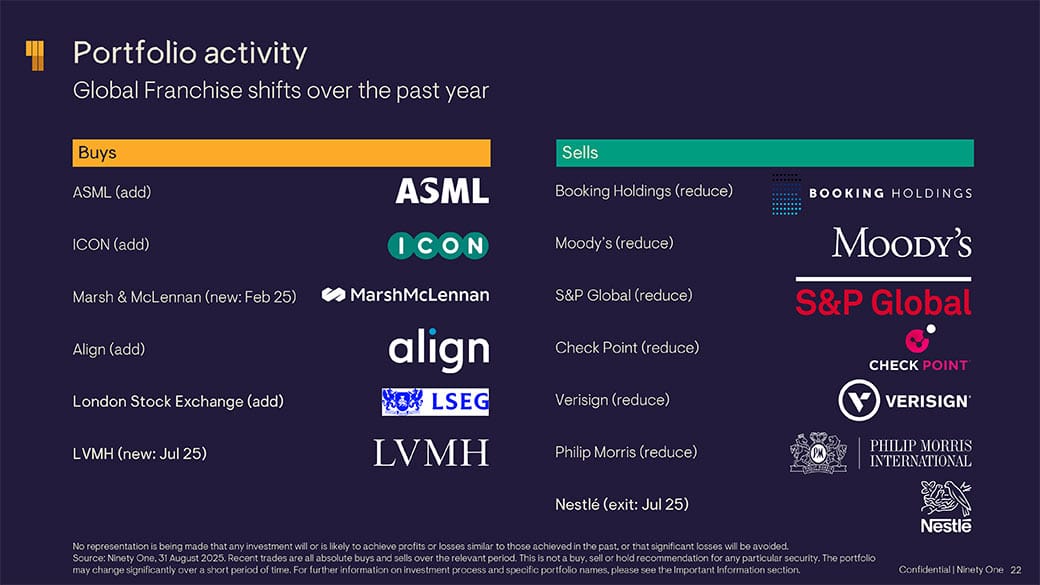 It added or initiated in ICON, Marsh & McLennan in February, Align, London Stock Exchange and LVMH in July (see graph below).