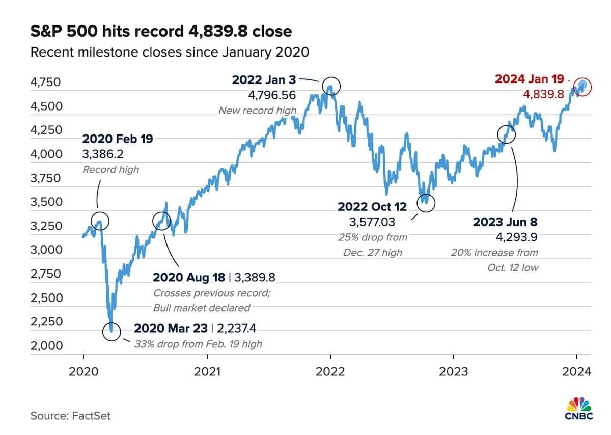 Following this, earlier in the week I saw a rather sensational headline on social media with the heading “US S&P markets hit record highs”, from a fairly reputable international news agency.