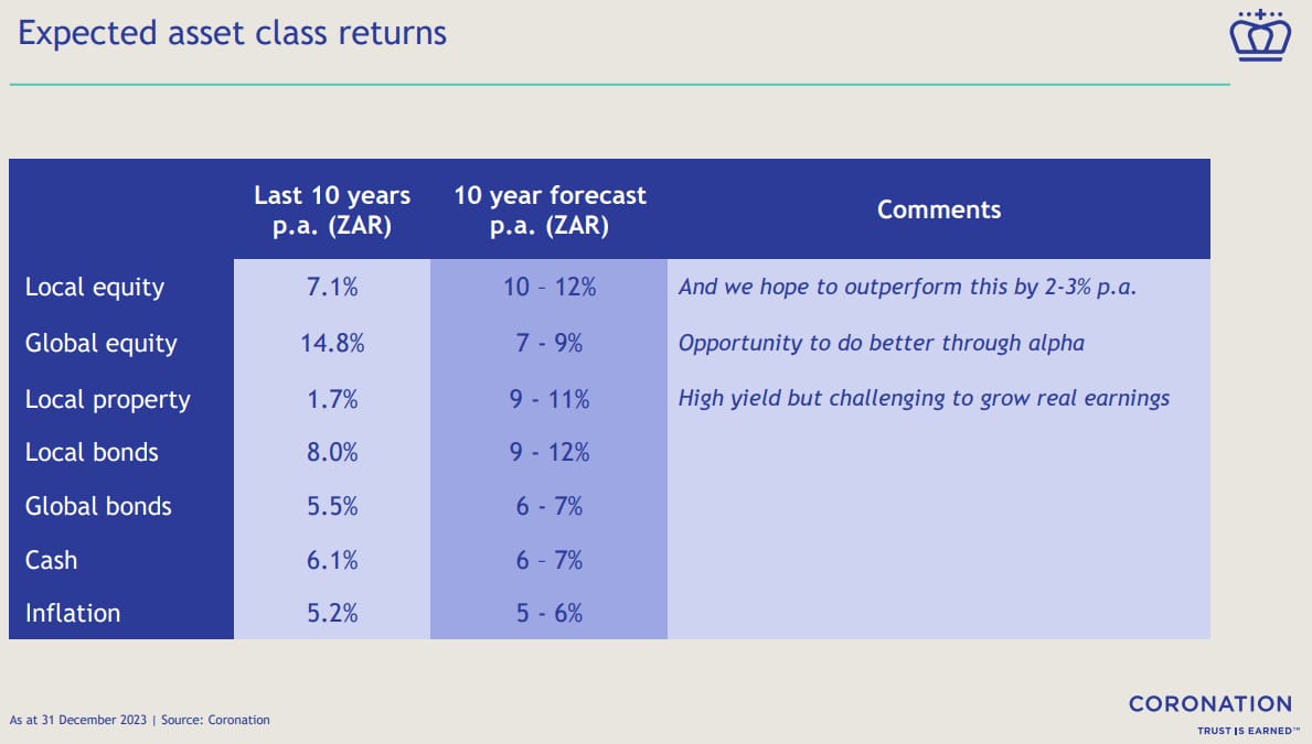 We won’t necessarily agree with this, but Coronation has a strong track record when predicting asset class returns, enough for us all to take note.