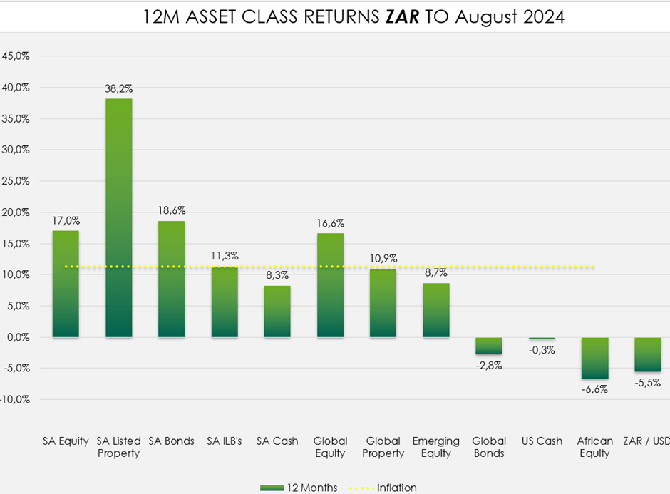 Coming off a low base a year ago when SA saw much negative sentiment, this good increase in the Bond and Listed Property markets, is the investment markets anticipating and taking into account that interest rates will be cut shortly, although we haven’t even seen these first interest-rate cuts yet.