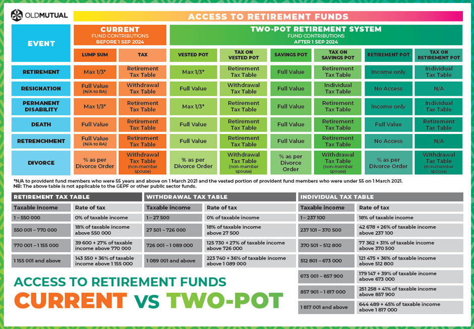 Old Mutual neatly put together in a nice infographic the current vs new retirement system with Two-Pot coming on 1 Sep 2024